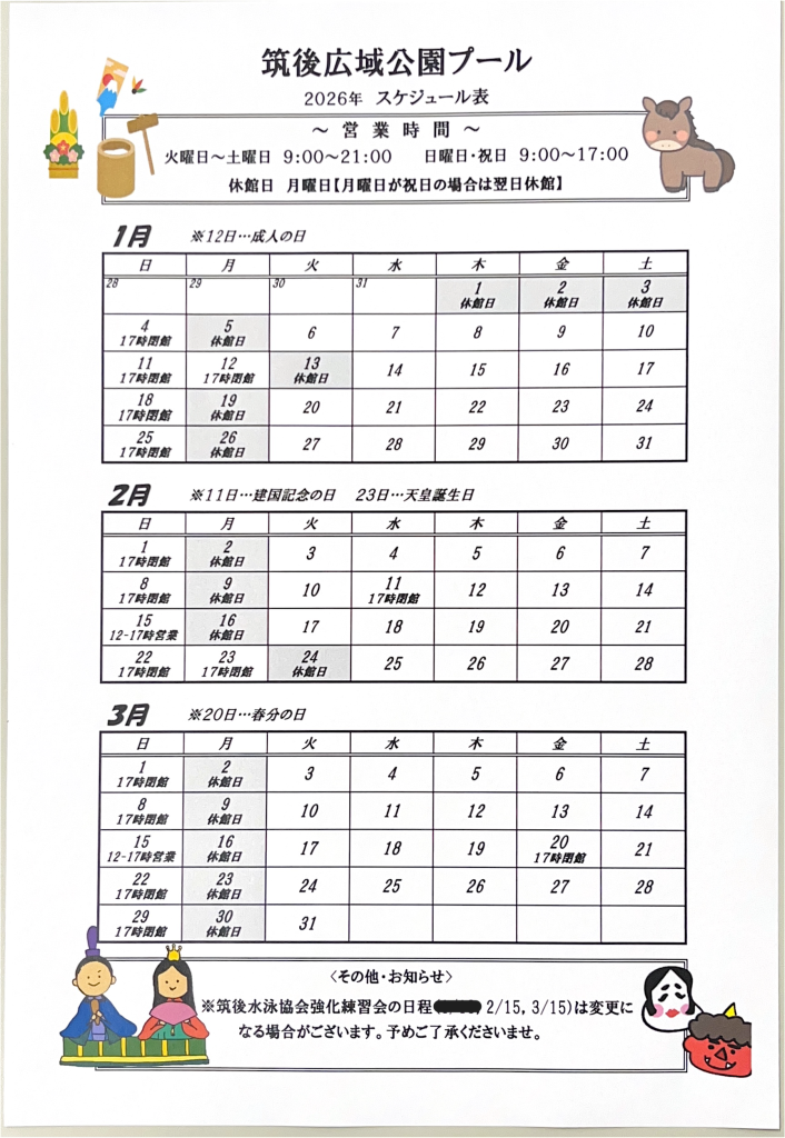 令和8年1月~3月のスケジュール表をご確認ください。