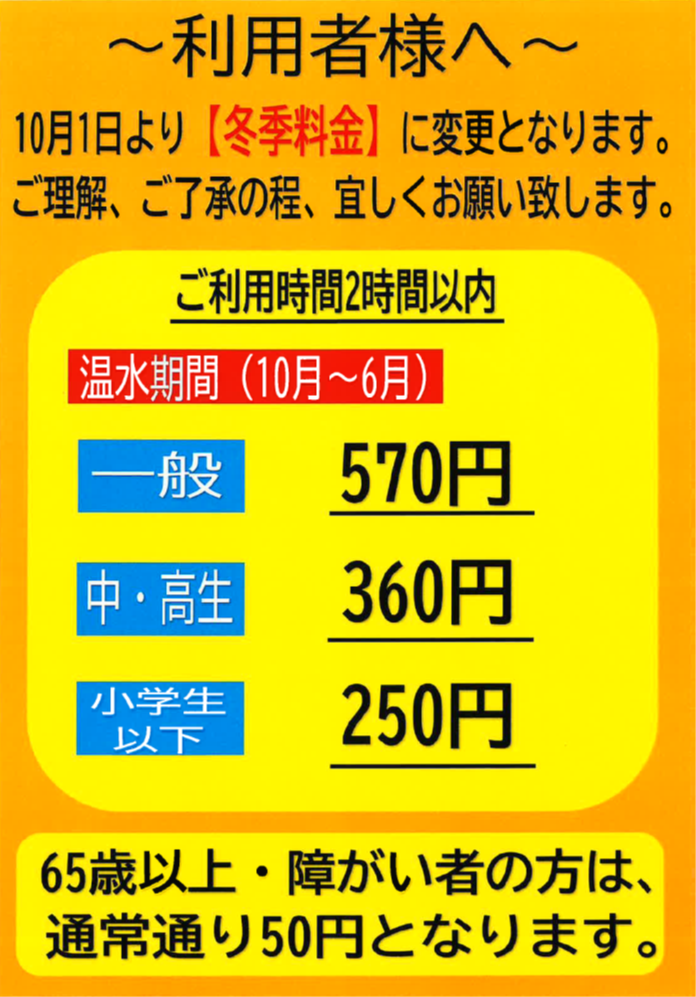 筑後水泳協会練習会開催の為10月26日(日)の営業時間変更のお知らせ